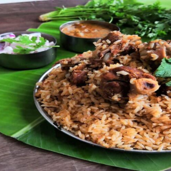 Mutton Briyani, Mutton Fry, Egg Salna & Raitha